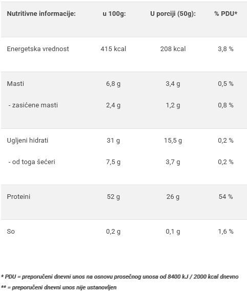 - Visok sadržaj proteina surutke, kazeina i belanaca